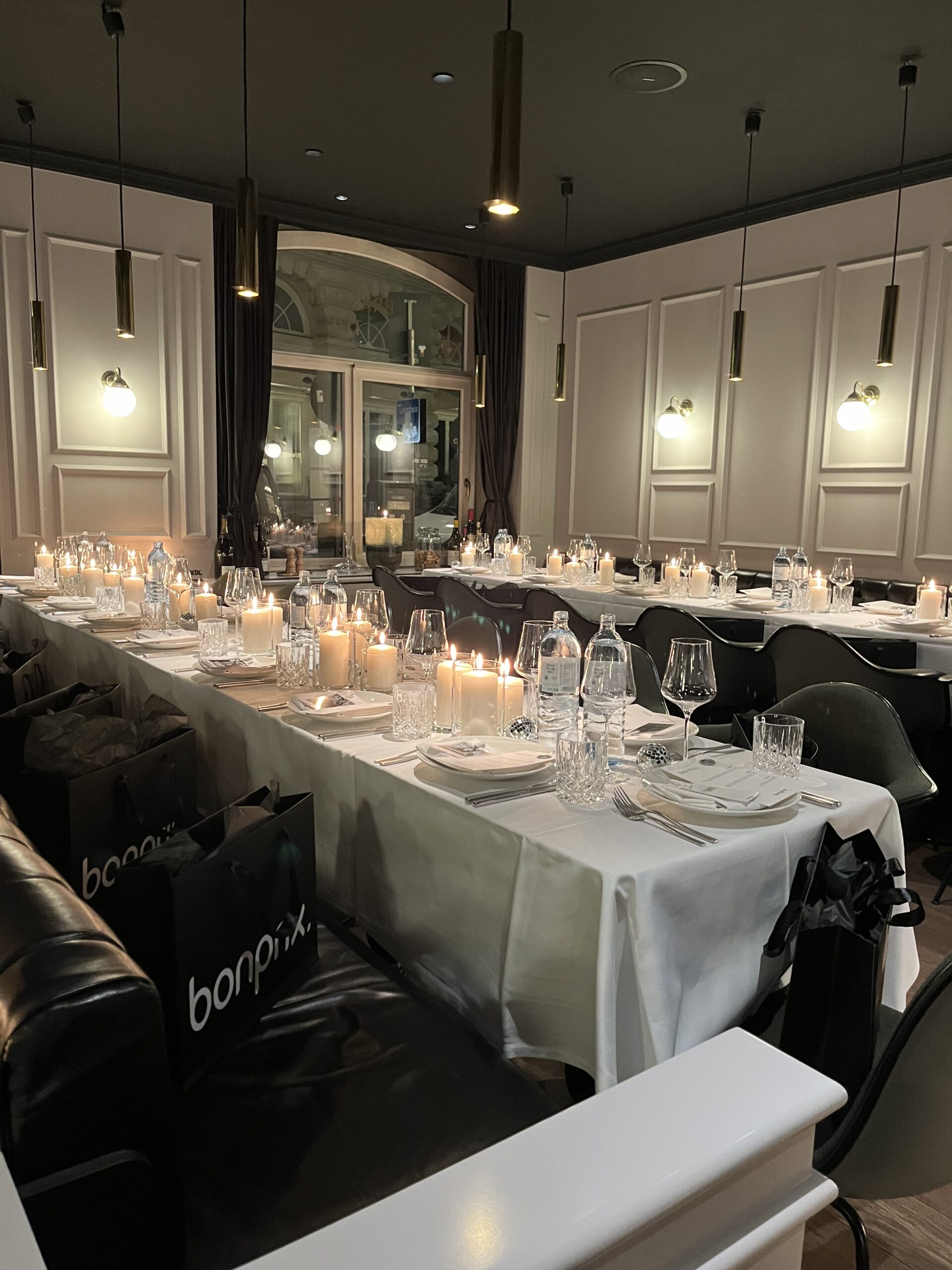 Eine Woche später, am 26. November, wurde von bonprix zum Zelebrieren der Freundschaft in Hamburg eingeladen. Im Restaurant „Der erdbeerfressende Drache“, direkt am Alsterufer, haben sich RedakteurInnen mit bonprix zusammengefunden um Friendsgiving zu feiern. Das Dinner wurde von einem Klavierspieler begleitet und extravagante Speisen serviert. Wie in München wurden persönliche Dankesgrüße an die Lieben der Gäste verfasst und die neue Kollektion präsentiert. Besondere Marken Insights wurden durch bonprix ExpertInnen geteilt und haben für einen spannenden Blick hinter die Kulissen gesorgt.