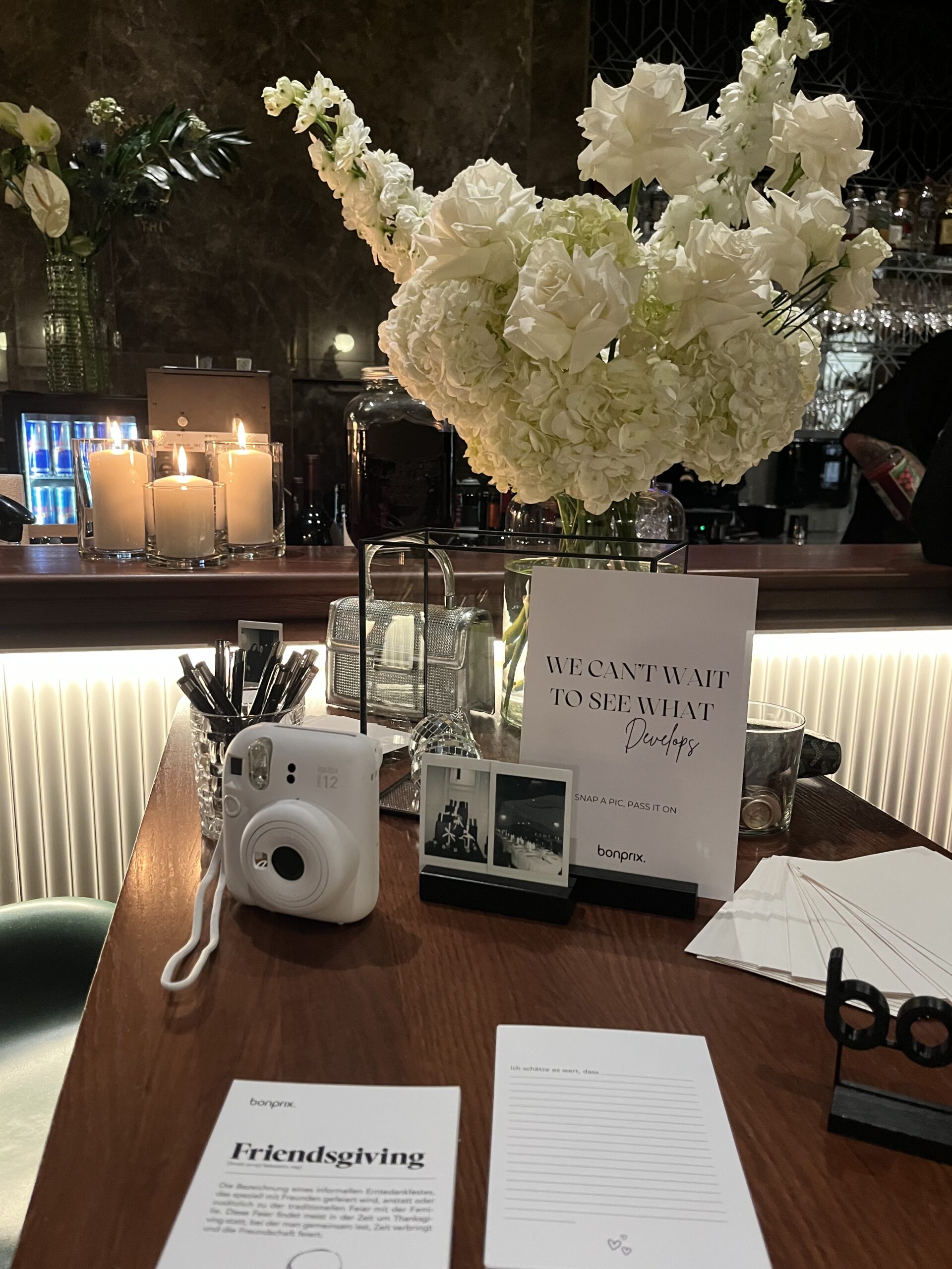 Am 19. November fand das erste bonprix Friendsgiving Dinner in der edlen Brasserie Thi statt. Die Küche bot ein Menü aus drei Gängen, welches durch die ausgefallene Kombination aus saisonalen Zutaten überzeugte. Während des Dinners wurde an den Tischen geplaudert und die neue Kollektion von bonprix wurde präsentiert. Unter dem Motto „Connect with Friends“ haben die Gäste persönliche Dankesgrüße per Brief an ihre Liebsten geschrieben, welche im Nachgang per Post versendet wurden.