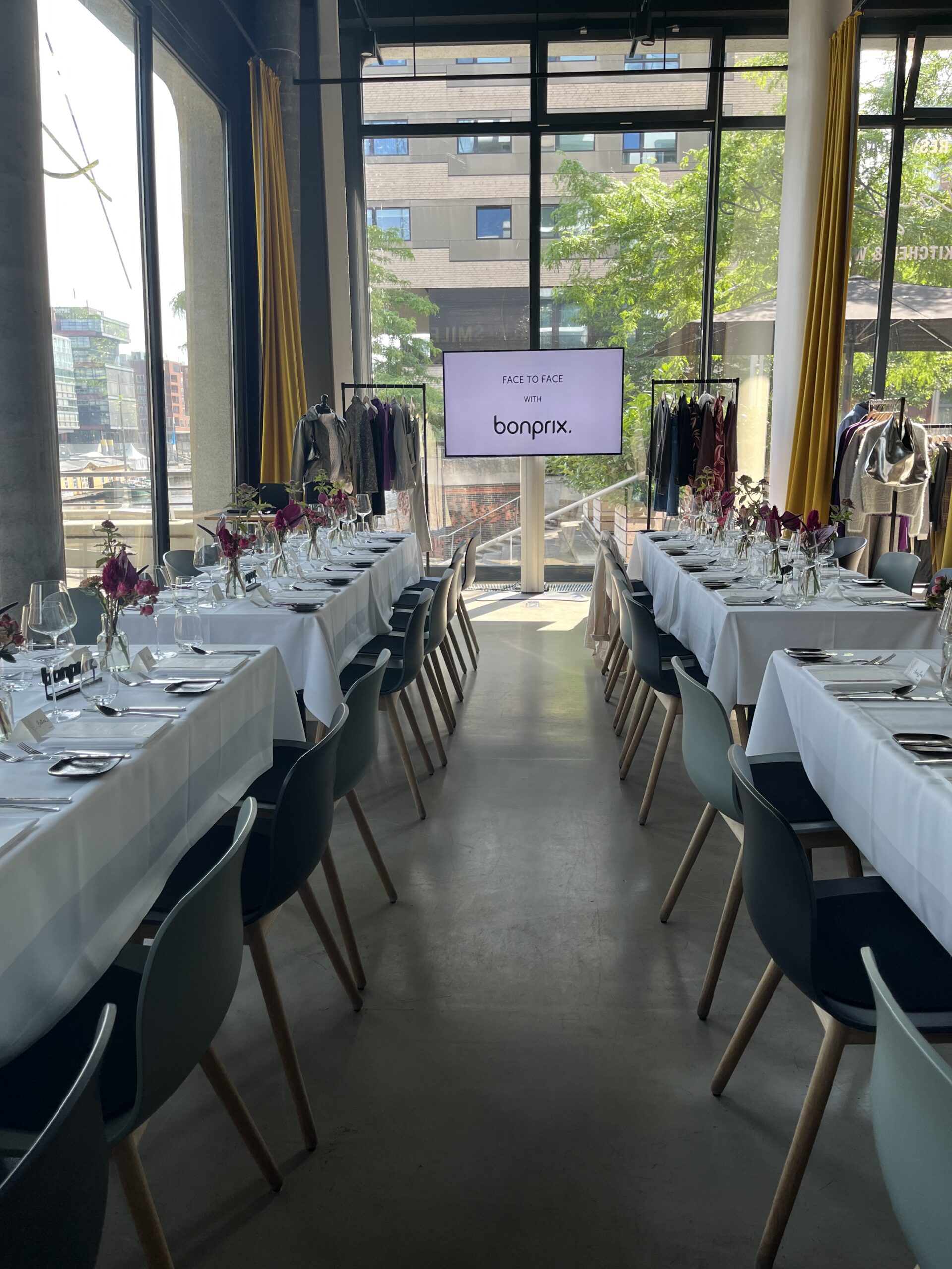 Die legere Lunch-Atmosphäre gab den Gästen Raum für Gespräche und bot die Gelegenheit, unsere Kontakte persönlich zu intensivieren. Der kreierte bonprix Fashion Corner, welche die Highlight Pieces der Herbstkollektion präsentierte, bot unseren Gästen im Anschluss die Möglichkeit sich eigenständig ein Bild der neuen Looks und Pieces zu verschaffen.
